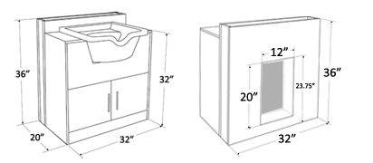 Bowl Cabinet Dimension: 32" W x 20" D x 36" H
